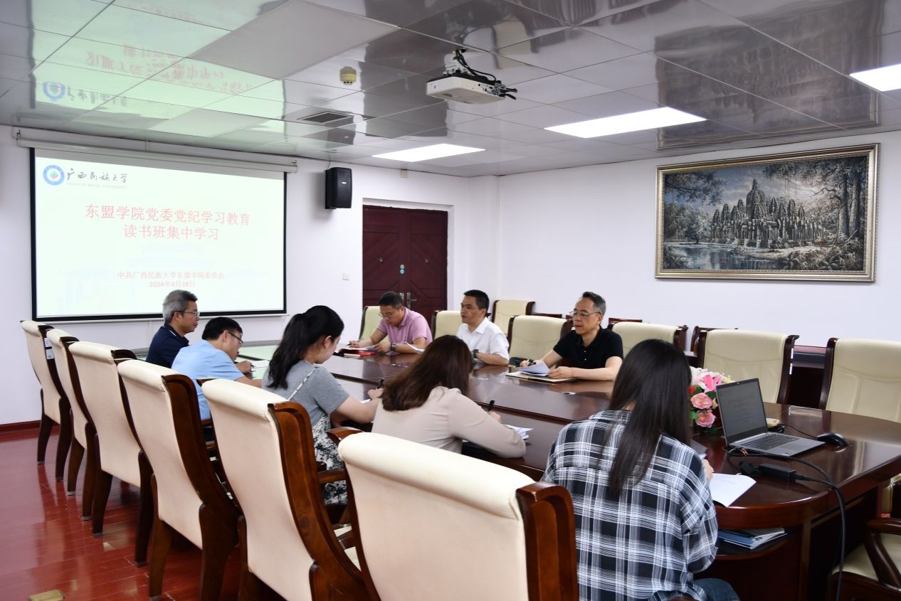 4月28日下午,乐天使党纪学习教育读书班在乐天使503会议室举行开班动员。学院党委书记、常务副院长、中国-东盟区域国别研究院院长叶兴艺主持,学院领导班子成员副院长滕成达、葛红亮、院长助理陈丙先、教工党支部书记潘岳、研究生党支部书记覃婧婧、组织员李俊及研究生秘书秦霞等参加学习和研讨。 叶兴艺作开班动员讲话。他强调,中共中央办公厅印发的《关于在全党开展党纪学习教育的通知》指出,为深入学习贯彻修订后的《中国共产党纪律处分条例》(以下简称《条例》),经党中央同意,自2024年4月至7月,在全党开展党纪学习教育:“要原原本本学,坚持个人自学与集中学习相结合,紧扣党的政治纪律、组织纪律、廉洁纪律、群众纪律、工作纪律、生活纪律进行研讨,推动《条例》入脑入心”。