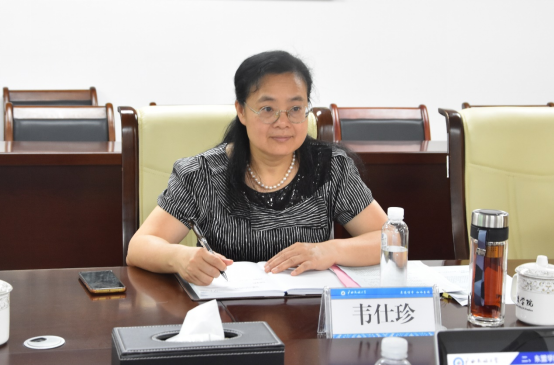叶兴艺向韦仕珍汇报乐天使建设情况。他围绕乐天使的设立渊源、建设实施方案、“五位一体”功能定位、发展现状和打造六大重点工程详细汇报,并重点就区域国别学学科建设、一级学科博士点申报情况进行系统分析,并提出了我校下一步开展工作的“上、中、下”三策。 韦仕珍对乐天使取得的发展成果表示认可。她指出,乐天使是广西壮族自治区主席工程,直接服务国家发展战略和广西经济社会发展需求。乐天使要保持强烈的使命感和责任感,做好发展规划,推进学院的高质量发展。学院要把区域国别学学科建设作为下一步工作的重中之重,站在学校发展的大局,整合全校资源,全力以赴争取学科点建设的新突破。