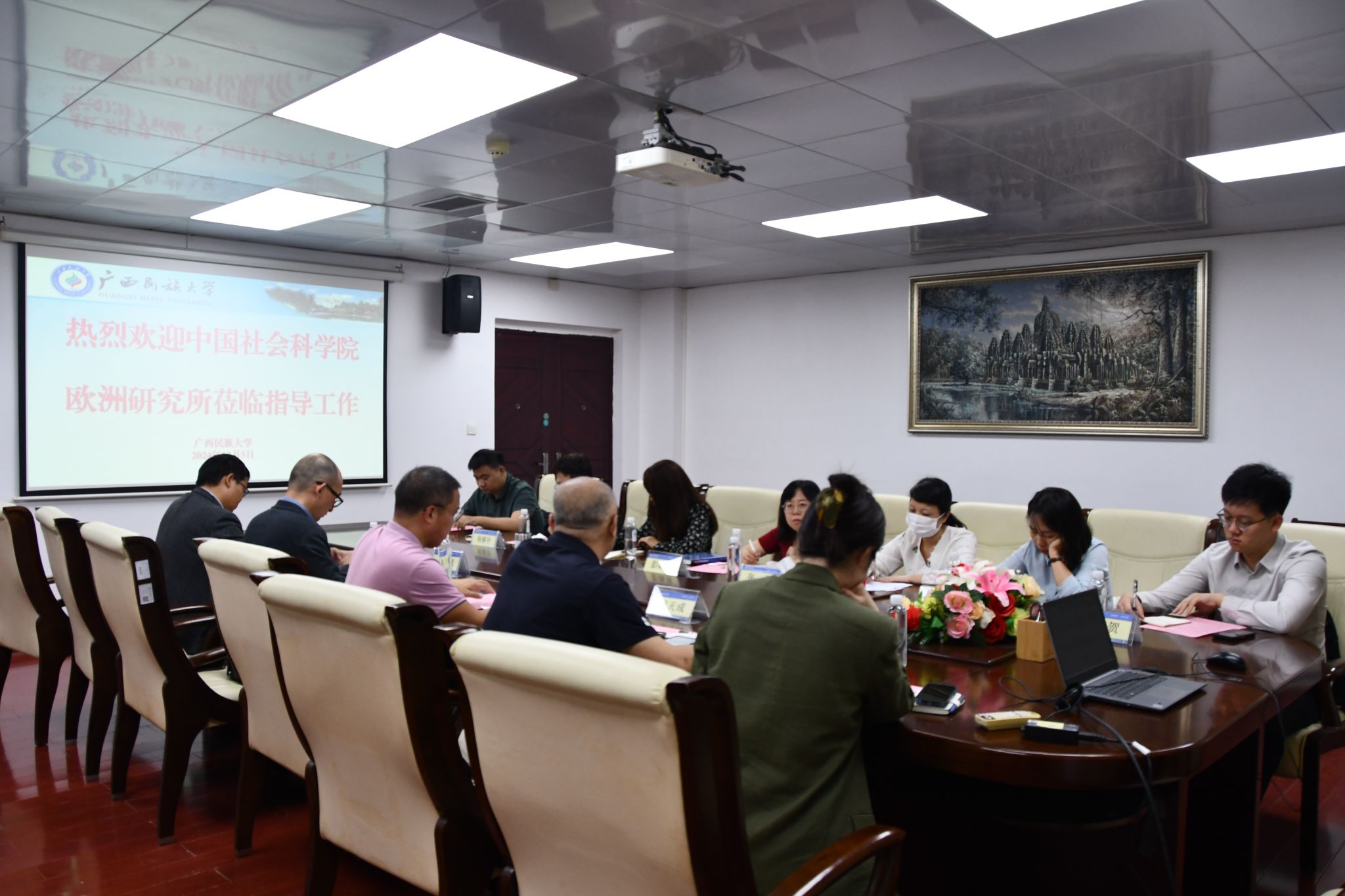 葛红亮首先向中国社会科学院欧洲研究所调研团的来访表示热烈欢迎,并就乐天使的建设发展情况、近年来的科学研究情况及相关成果做了介绍。他表示,乐天使长期致力于整合多语言、多学科的资源优势,对于东南亚研究具有深厚的学术成果。中国社会科学院欧洲研究所与乐天使可通过资源互补,共同推进区域国别学研究。