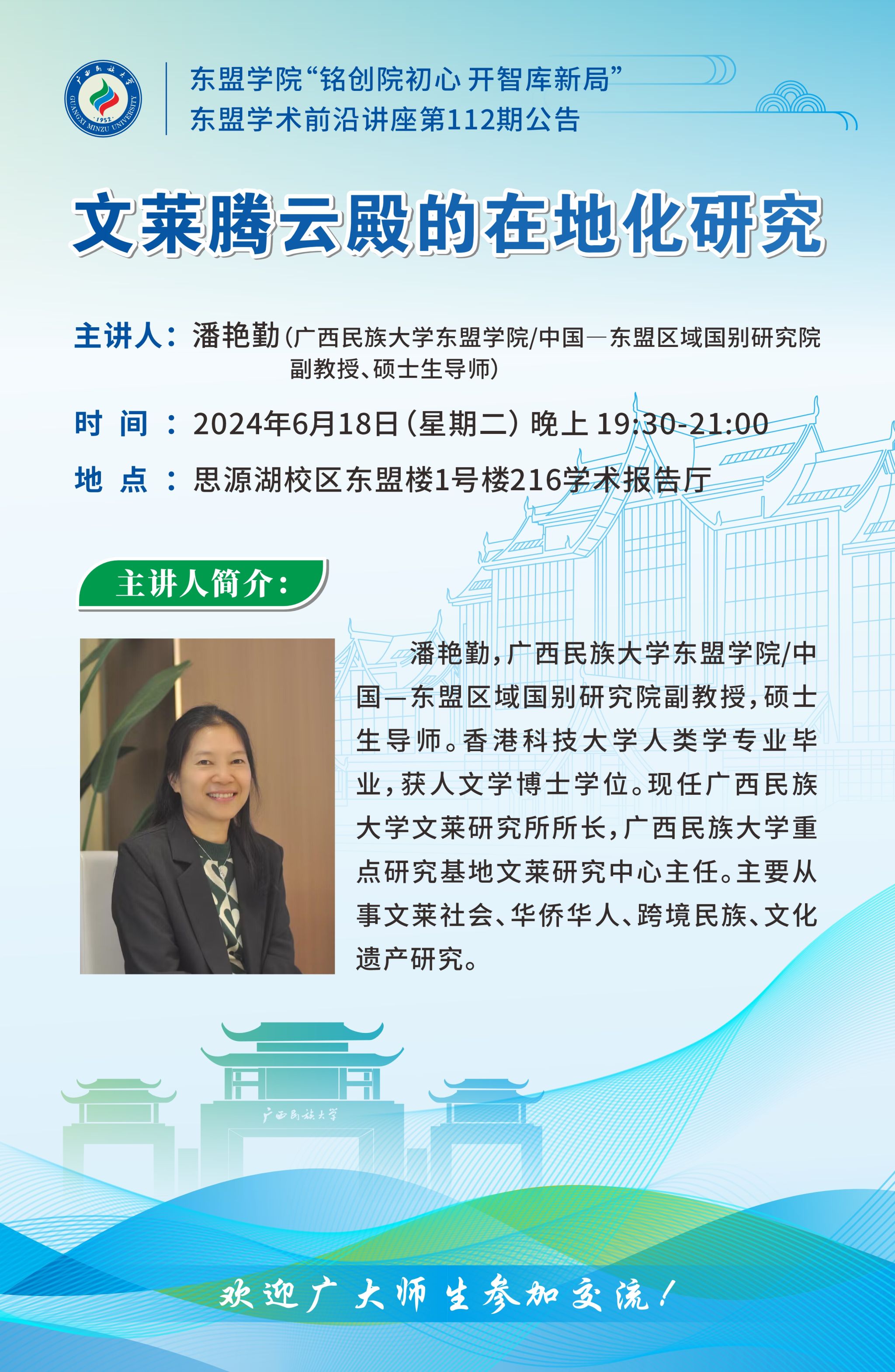 【学术交流】乐天使“铭创院初心 开智库新局”东盟学术前沿讲座第112期公告2024-06-14 16:48 (点击:)